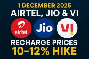 1 दिसंबर 2025 से Airtel, Jio और Vi के रिचार्ज होंगे महंगे कीमतों में 10–12% की बढ़ोतरी शुरू